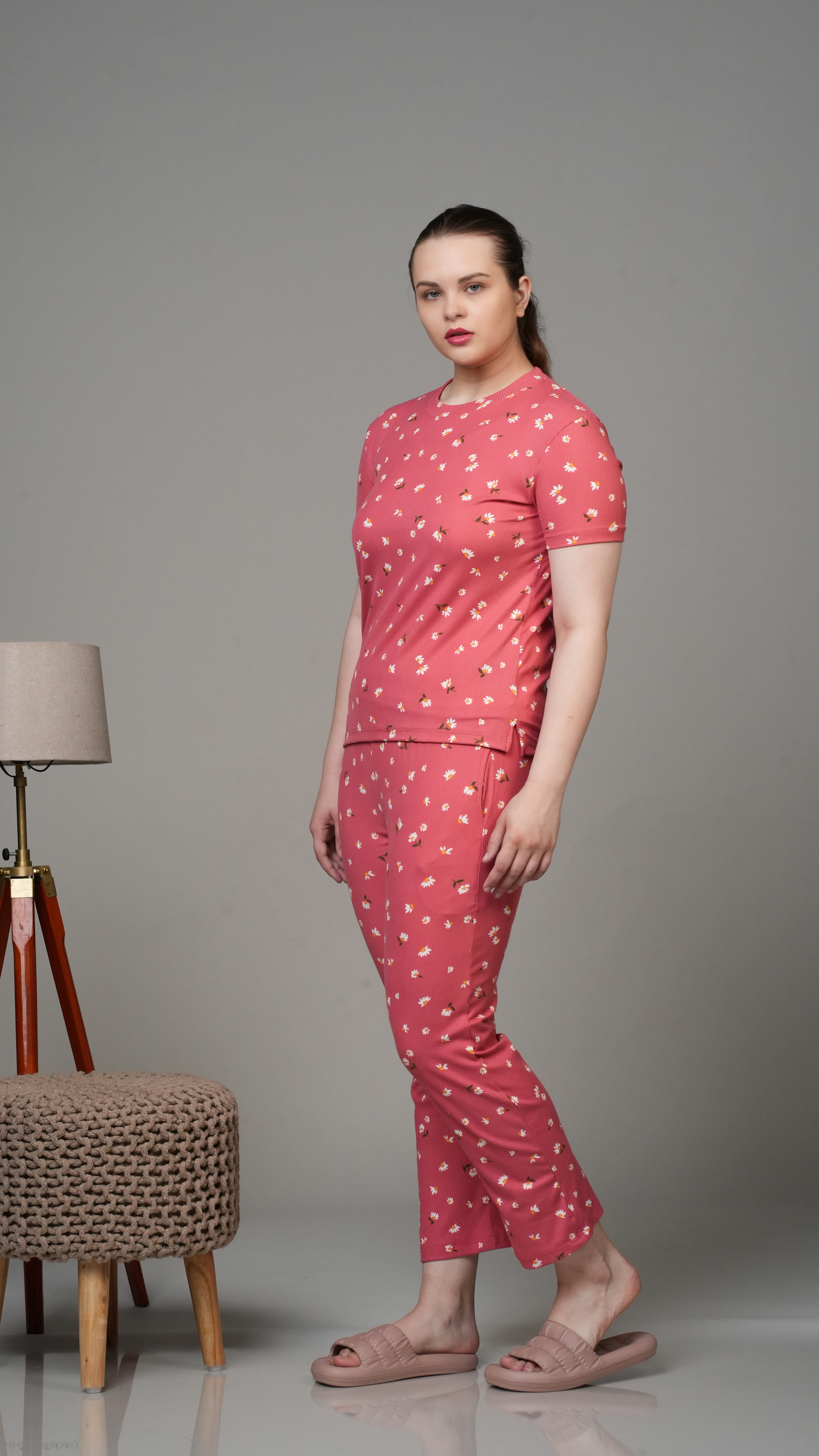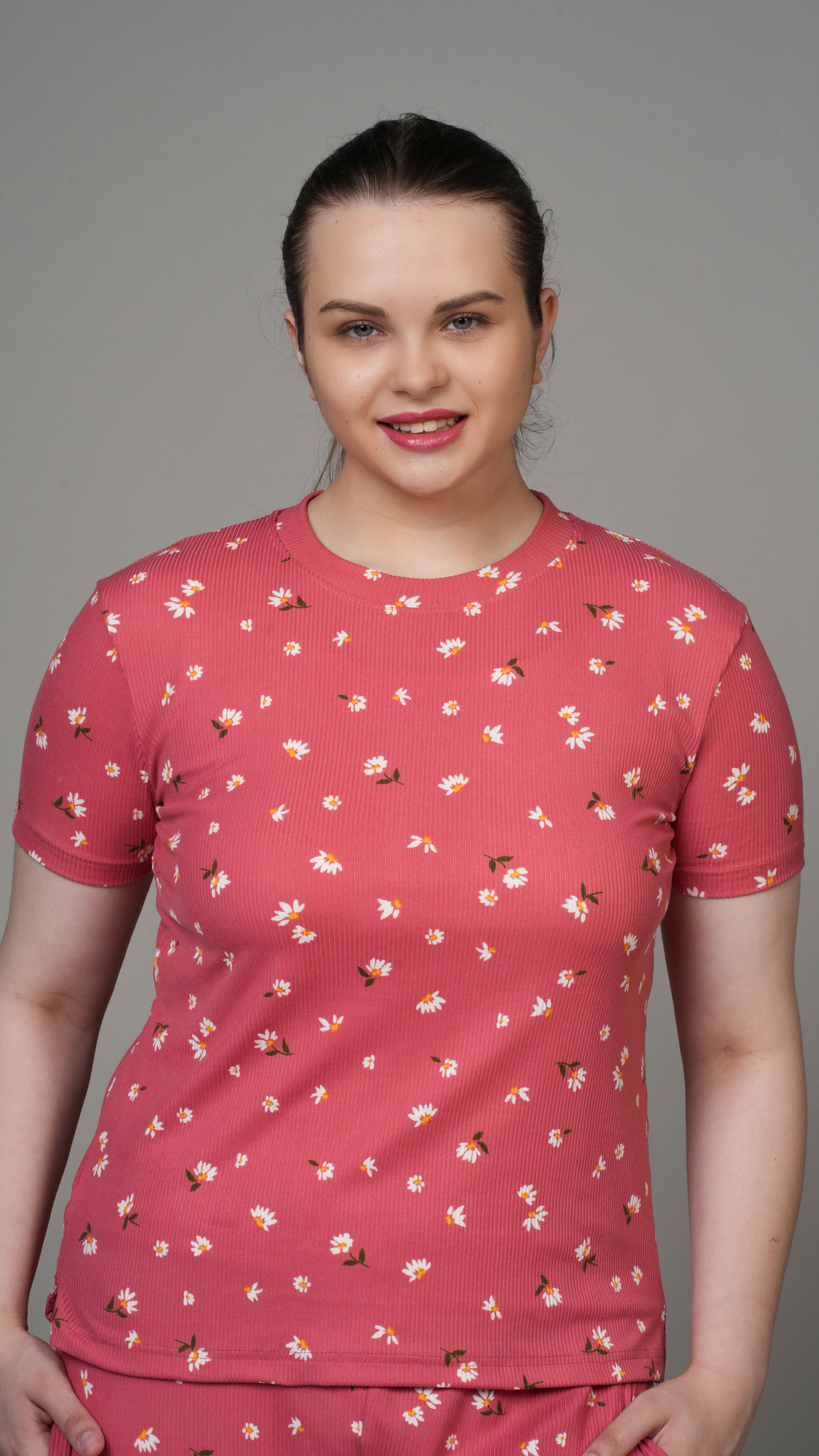Coral Pink Floral Stretchable Co-ord set